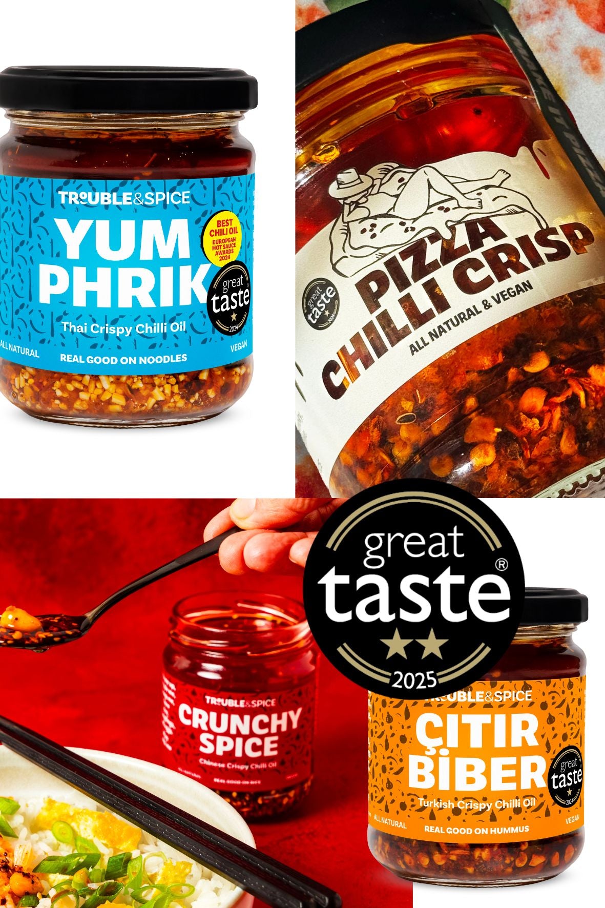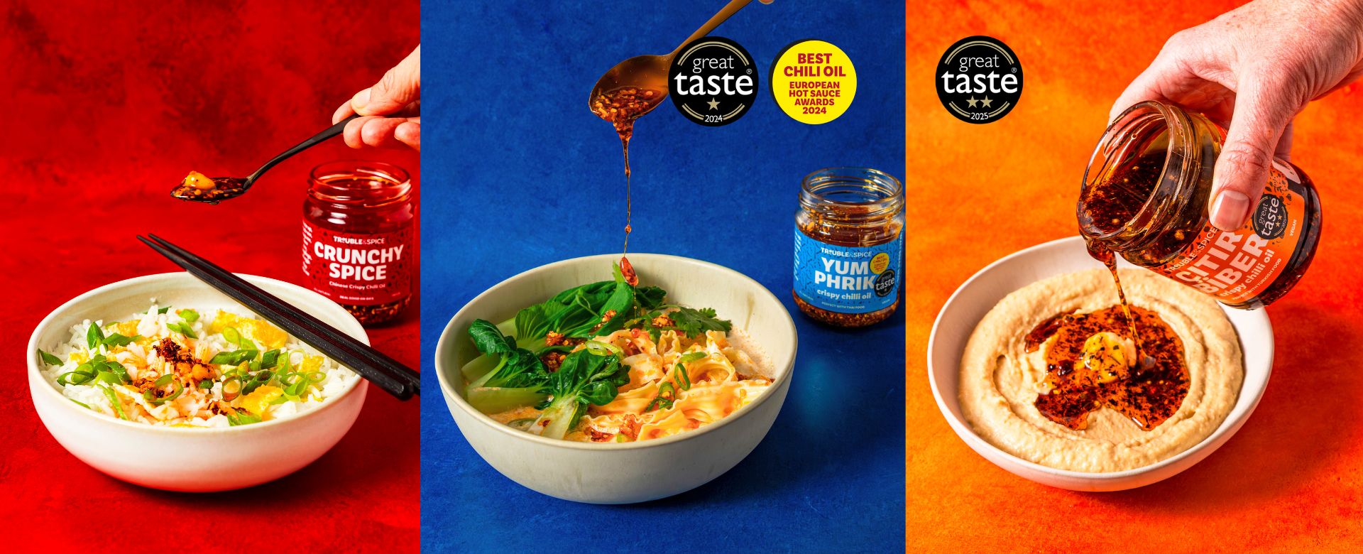 My range of crispy chilli oils help you create delicious meals fast. Win back more time to enjoy together instead of in the kitchen. They are perfect for family meals when the adults want more spice and the kids are less adventurous.